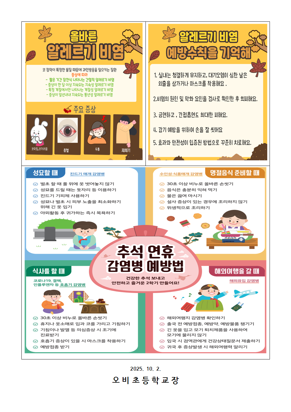 감염병 예방수칙 안내(호흡기 감염병, 수잊성 및 식품매개 감염병)
